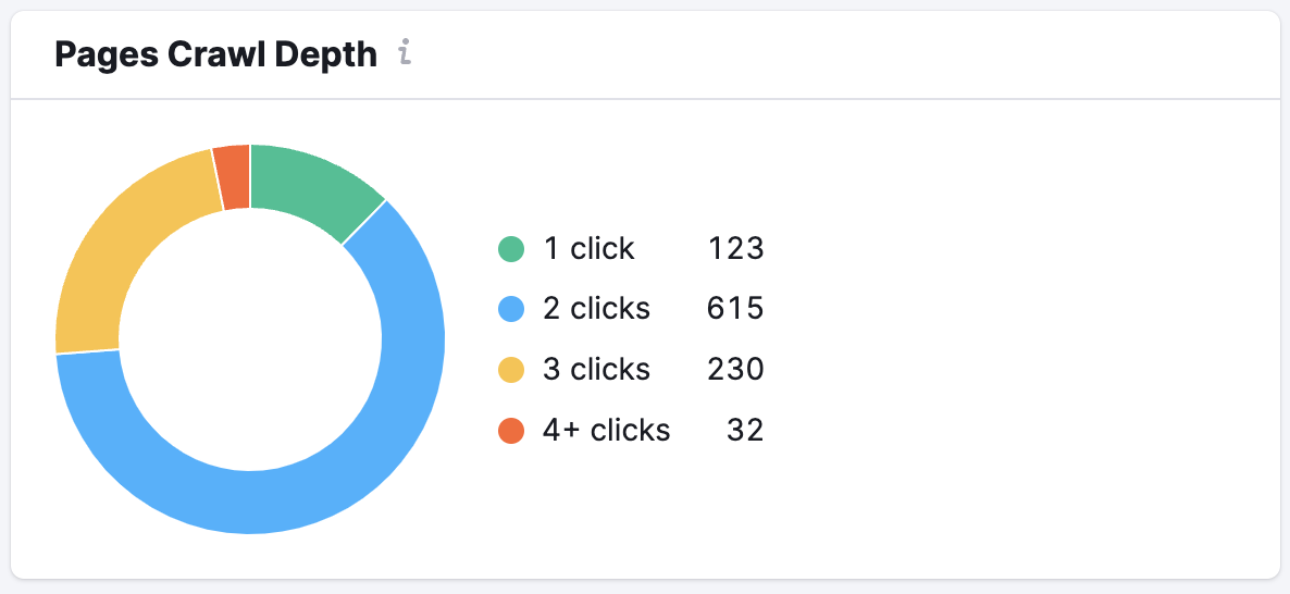 Then you will see a chart showing the Pages Crawl Depth. The number of clicks in the Pages Crawl Depth chart refers to how many clicks the crawler had to make on your site to reach each page during the crawl. With a lower crawl depth, it’s easier for a web crawler to find the content on your website. With a crawl depth of 4+, there is a possibility that a user or bot won’t even reach the page.